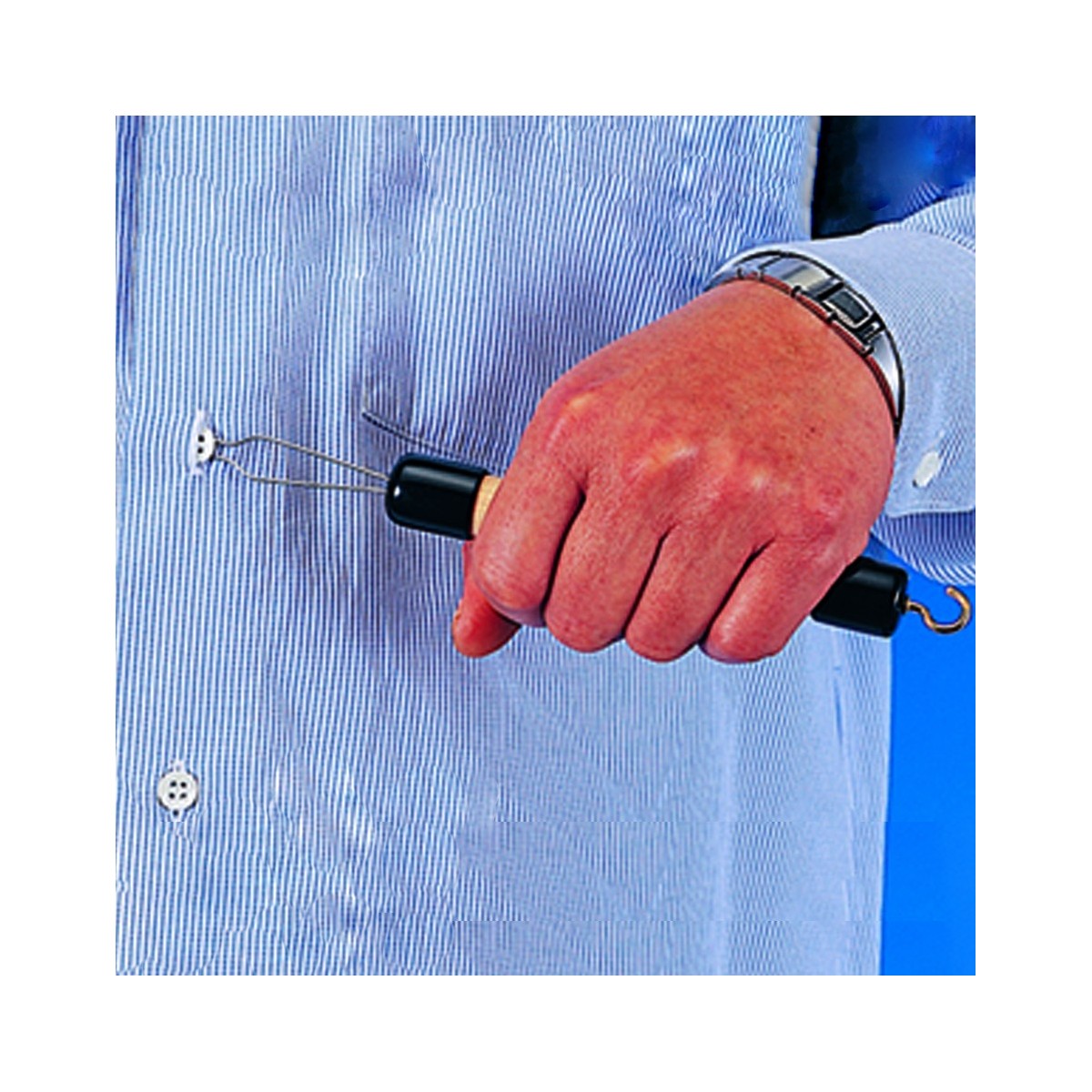 Permite abrocharse con una sola mano. El gancho ayuda también a subir cremalleras. Largo: 20 cm.