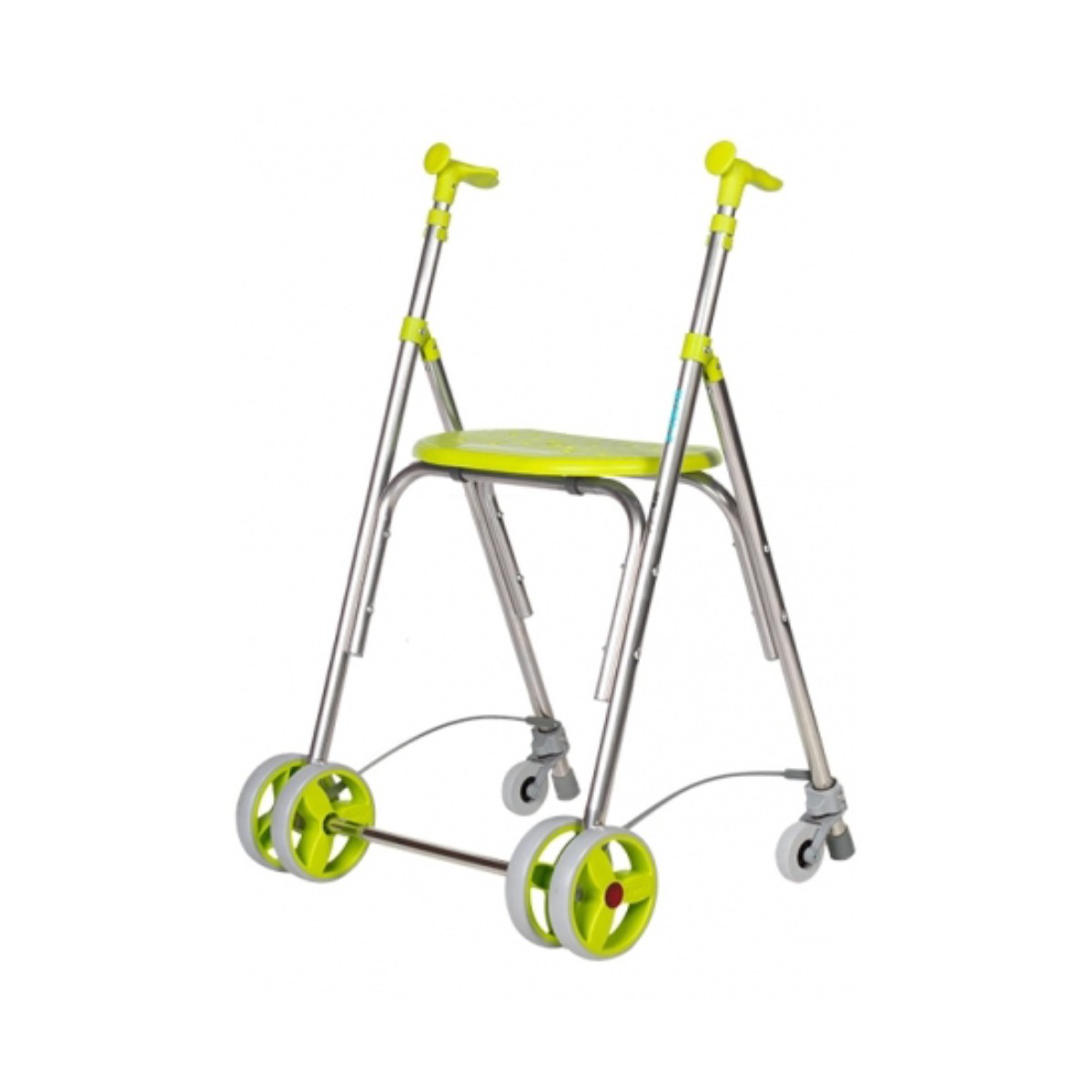 El modelo Kamaleón de Forta es un andador plegable, fabricado en aluminio, ligero, con asiento y preparado para poder colocarle tanto ruedas traseras como cesta de tela.