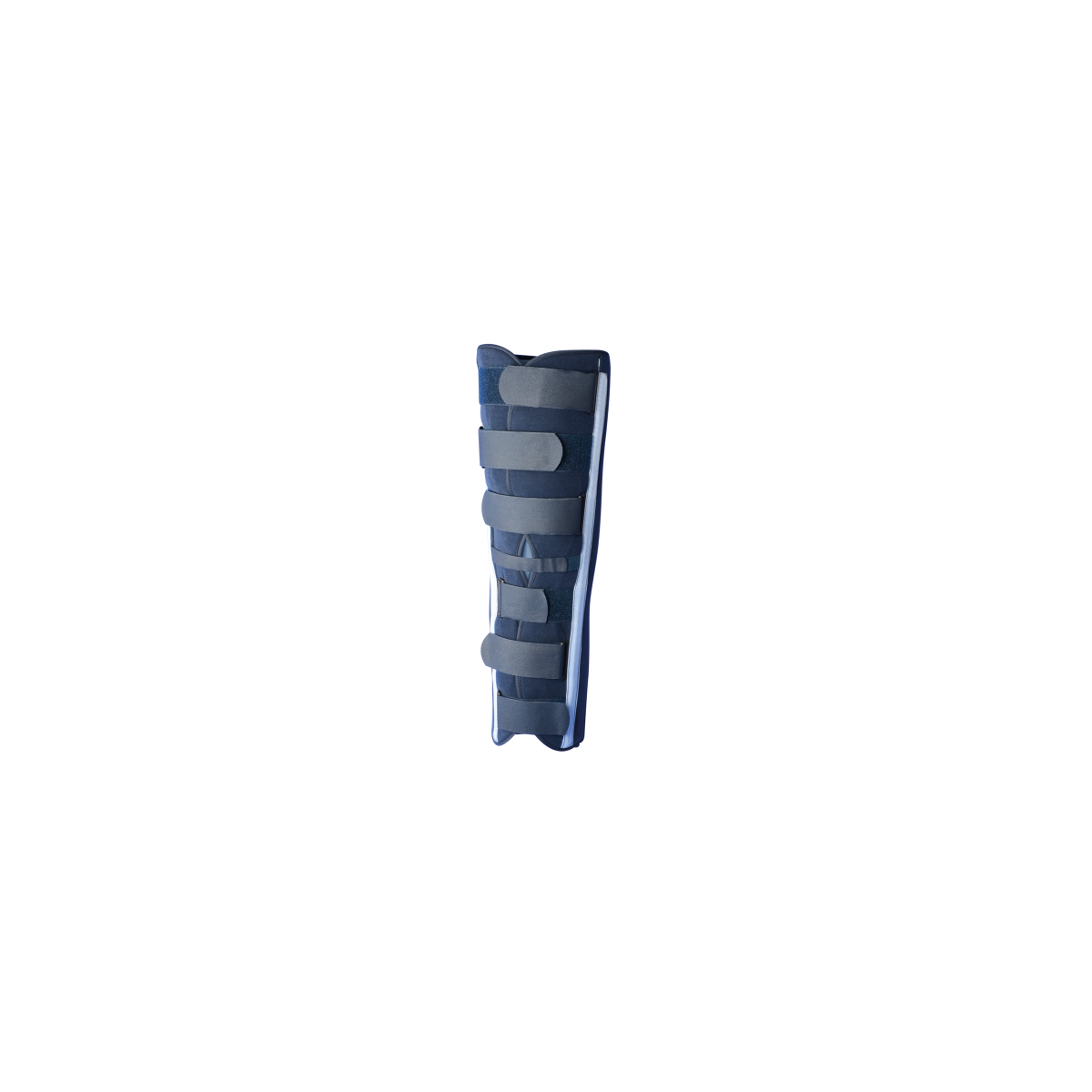 Inmovilización de la rodilla en extensión mediante 3 ballenas moldeables y radio transparentes Sistema antideslizante con sistema de cinchas incorporado para una sujeción óptima de la órtesis