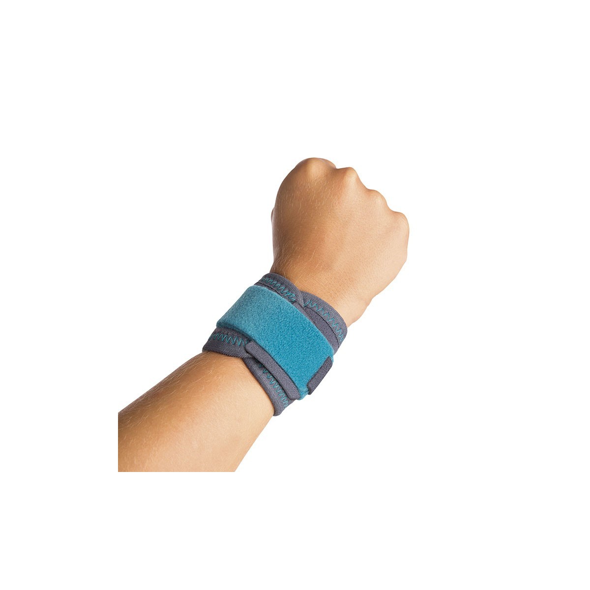 Muñequera confeccionada en panal transpirable y velour elástico, posee un sistema de cierre mediante cincha de velcro que permite regular la compresión en función de las necesidades de cada paciente. Los velcros utilizados para fijar la muñequera son de microgancho.
