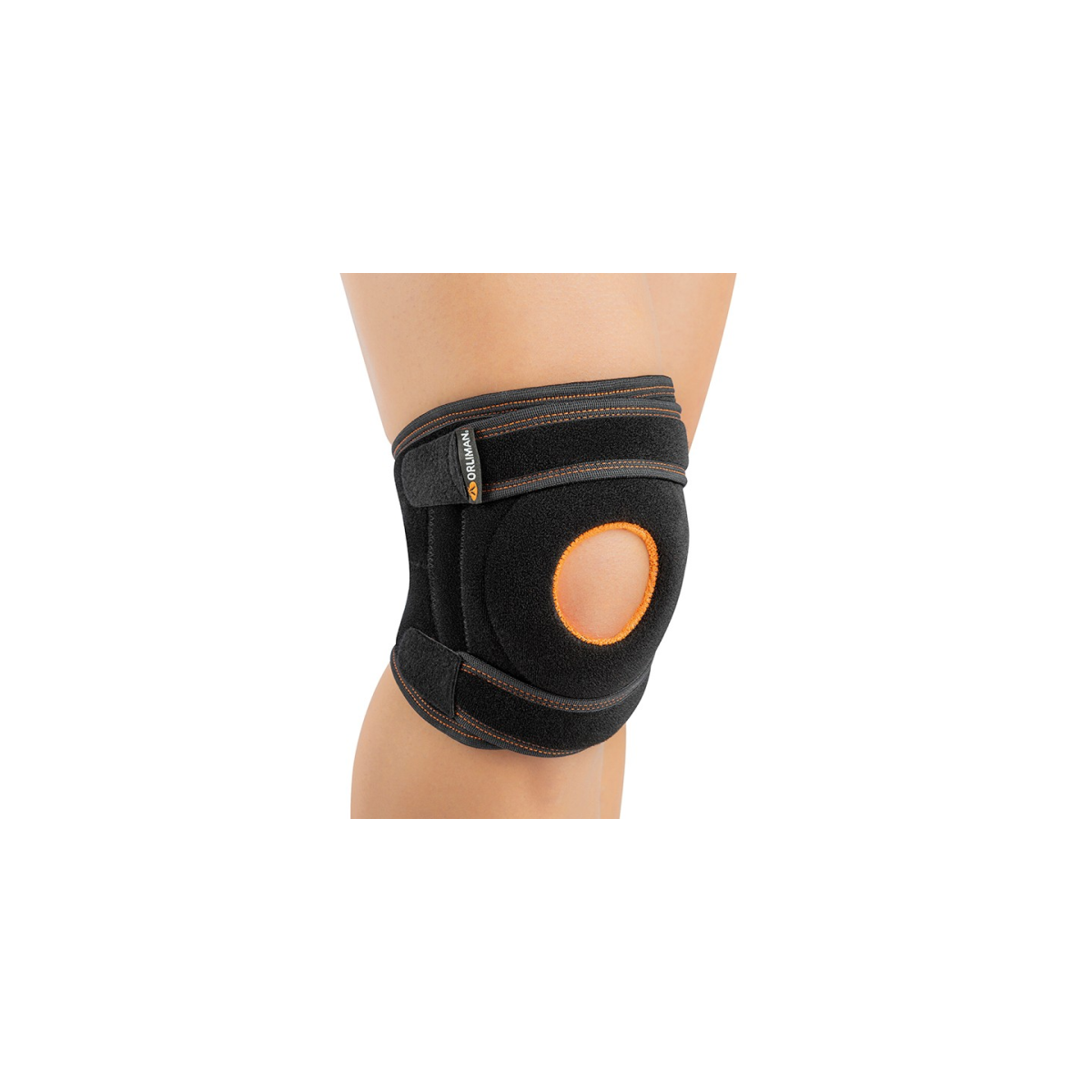 Rodillera con flejes medio-laterales elástica y transpirable. Formada por 3 capas que se dividen en un tejido elástico a base de microfibras, espuma de poliuretano y rizo de algodón, lo que facilita una rápida dispersión del sudor, una mayor elasticidad y una mejor adaptación, con puntos de silicona en su interior para evitar la migración de la ortesis. Sistema de cierre envolvente, con lengüeta al final para facilitar la abertura de las cinchas.